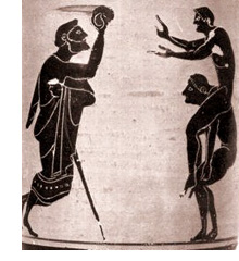 - Однажды слуги увидели змея, который лежал, вытянувшись вдоль тела спящей Олимпиады. Говорят, что это больше, чем что-либо другое, охладило влечение и любовь Филиппа к жене, и он стал реже проводить с нею ночи. То ли потому, что боялся, как бы женщина его не околдовала или же не опоила, то ли считая, что она связана с высшим существом, и потому избегая близости с ней. Говорят также, что Филипп потерял тот глаз, которым он, подглядывая сквозь щель в двери, увидел бога, спавшего в образе змея с его женой. (Плутарх)